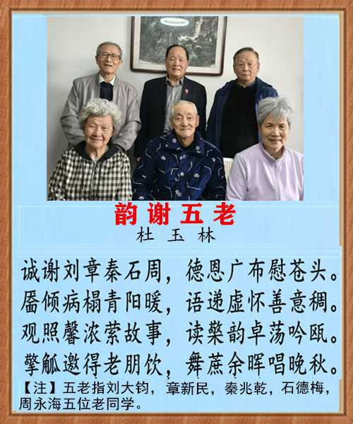 【杜玉林诗词】韵谢五老