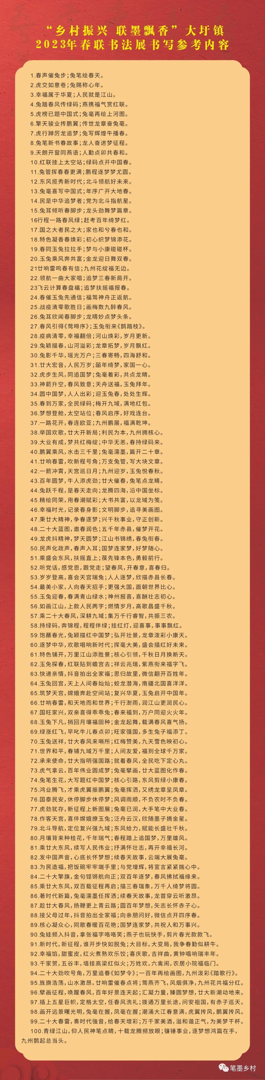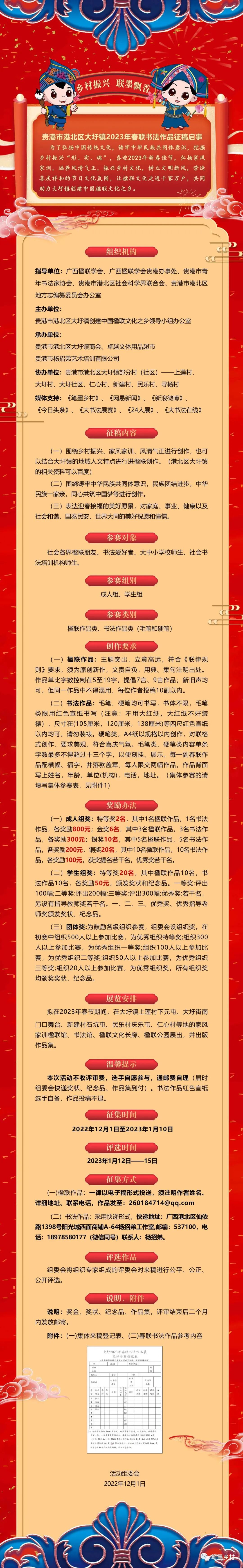 [其它征稿] 【23.01.10】2023年贵港市港北区大圩镇春联书法作品展征稿启事